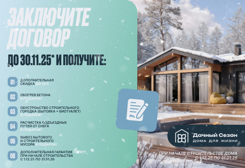 Планируйте строительство заранее и экономьте: заморозьте цены на ваш будущий дом уже в ноябре 2025 года и приступайте к строительству в марте 2026 года. Мы позаботились о том, чтобы старт стройки был комфортным, а процесс — максимально выгодным.