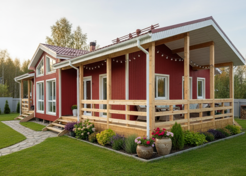 - Современные материалы обшивки и утепления каркаса обеспечивают повышенные теплосберегающие характеристики;
