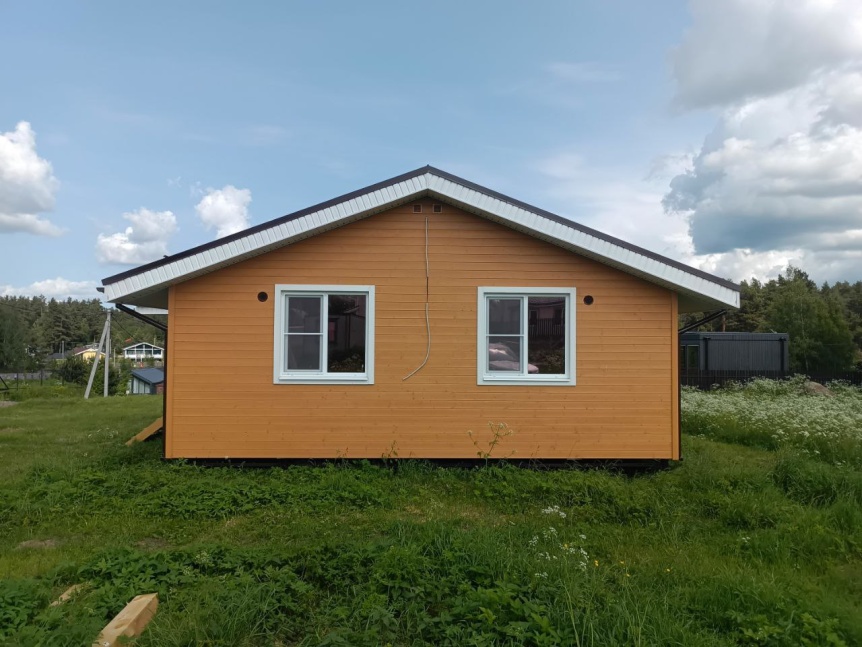 прочная кровля и аккуратная отделка фасада с горизонтальной имитацией бруса.