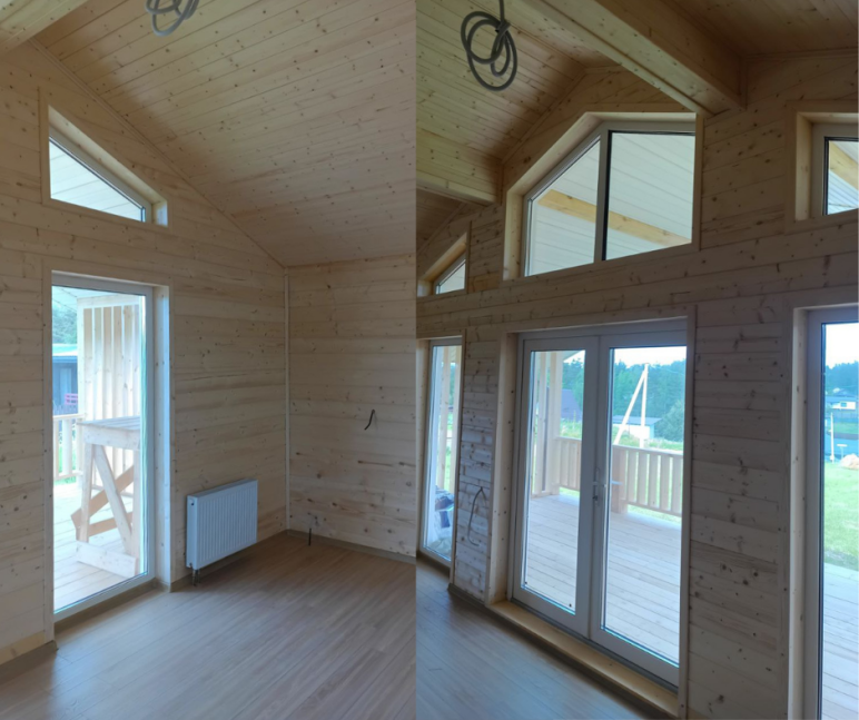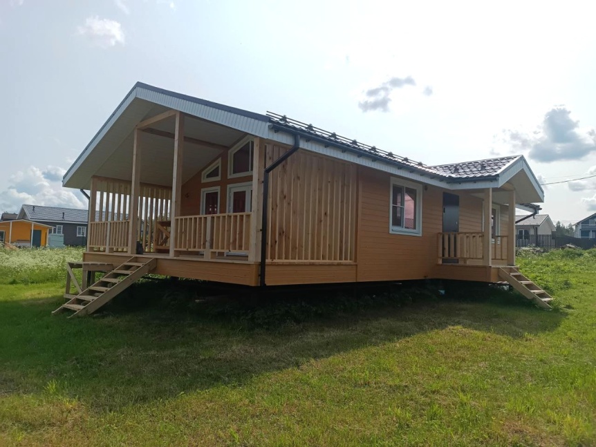 Этот дом гармонично подойдёт как для дачи, так и для круглогодичного проживания — тёплый, практичный и красивый.
