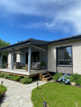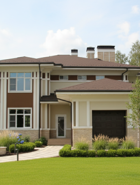 Дом, построенный нашей компанией в Калужской области, заслуживает особого внимания! За основу проекта был взят каркасный дом Шеферд. После доработок архитектора получился производный проект дома, который получил свое название как Монтана. В качестве наружной отделки Заказчиками была выбрана штукатурка Ceresit. Для каркасных домов как правило используется силикатно-силиконовая штукатурка, которая имеет свойства жевательной резинки, растягиваясь при малейших колебаниях. Текстура штукатурки выбрана – короед, оконные и дверные проемы отделаны декоративными элементами из пенопласта.