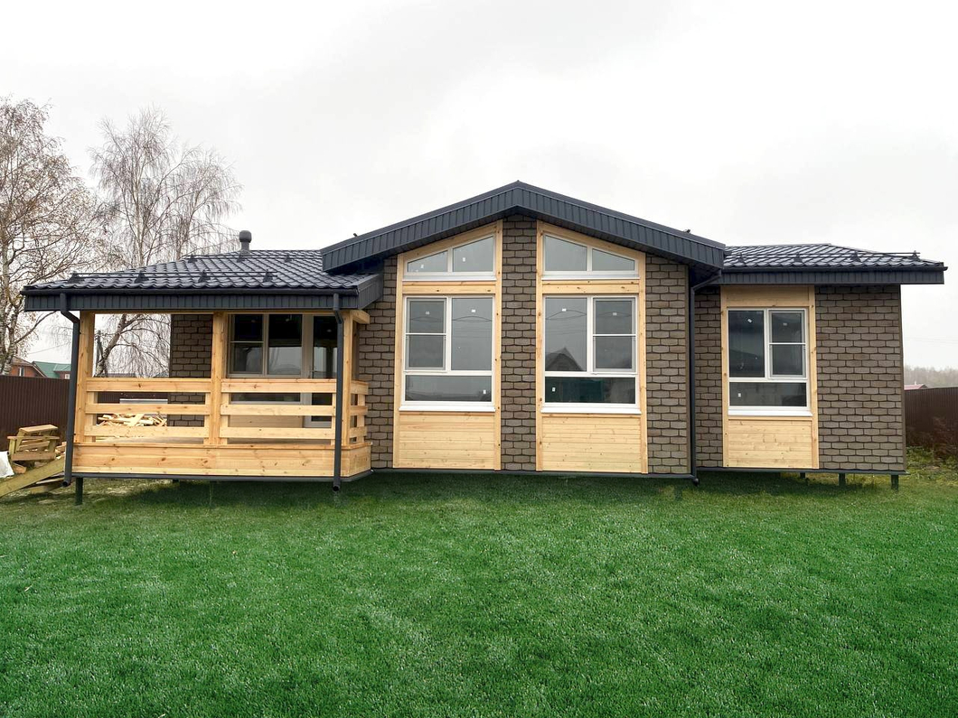 Дом, площадью ровно 100 кв.м. может похвастаться не только оптимальной продуманной планировкой, но и потрясающим экстерьером.