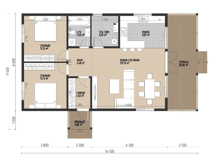 Проект сочетает стиль, удобство и функциональность, создавая уютное пространство для жизни в любое время года.