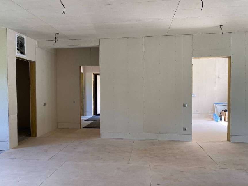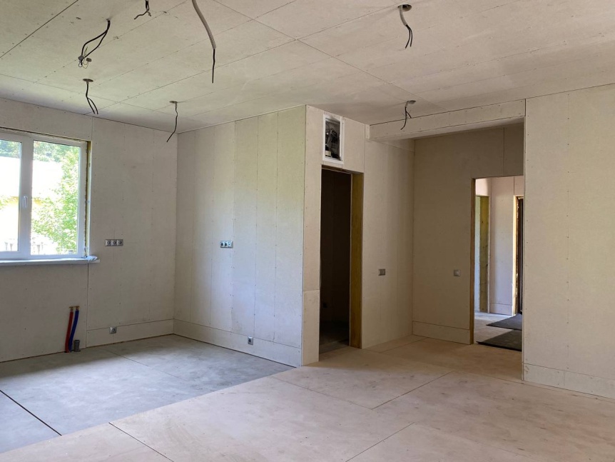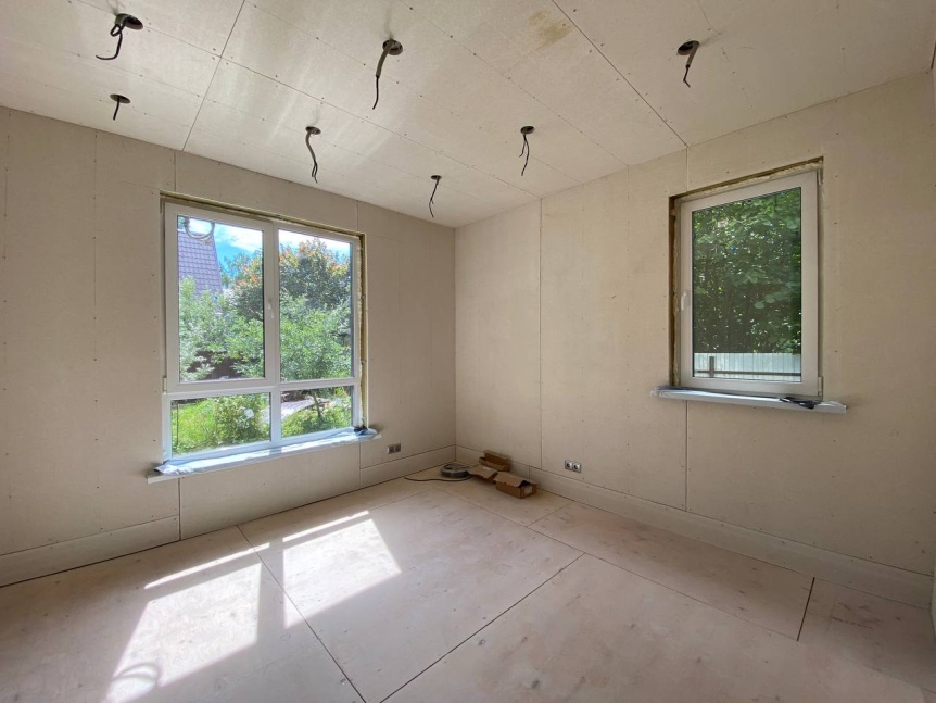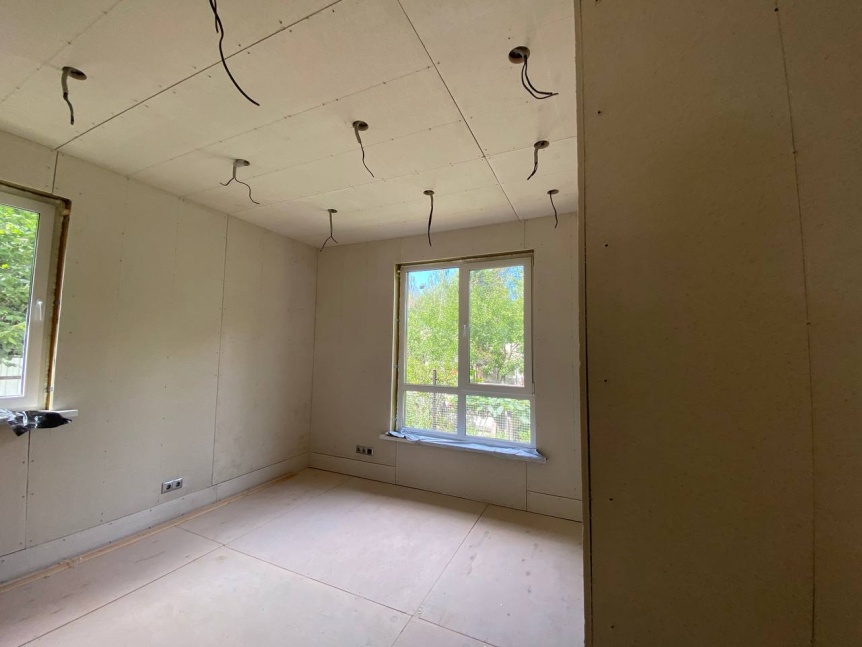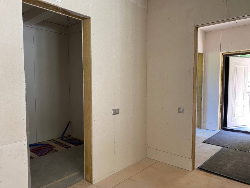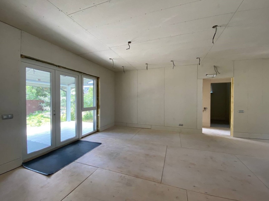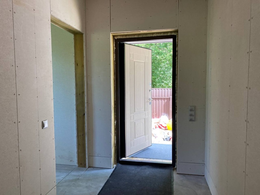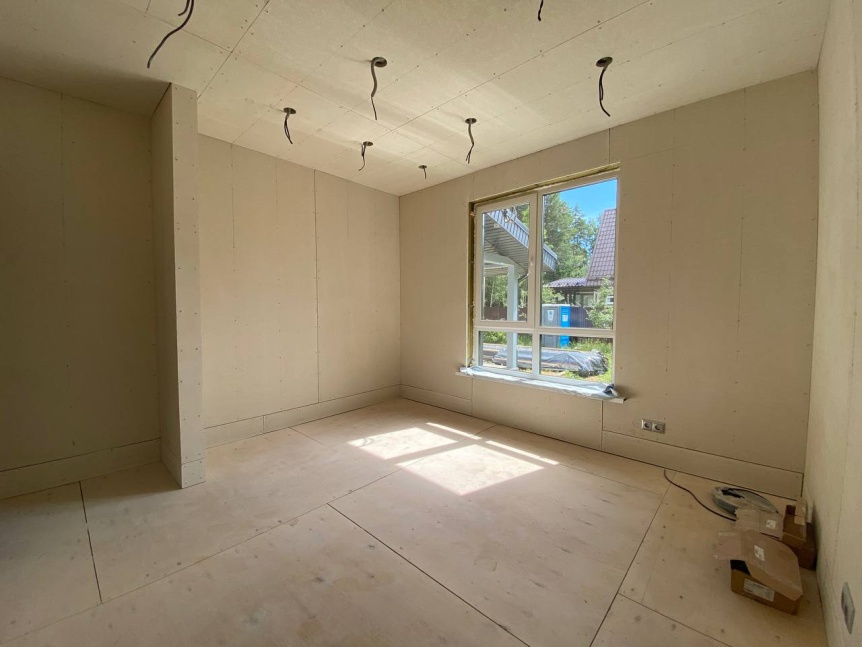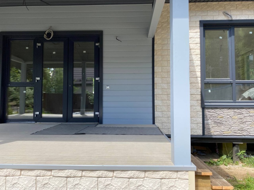 Одноэтажный дом по проекту Каннус, площадью 130 кв.м. с тремя спальнями, двумя санузлами, двумя техническими помещениями, террасой и отдельным крыльцом. Финские дома не теряют своей актуальности благодаря их комфортной эксплуатации. Отсутствие лестниц гарантирует безопасность для всех членов семьи, а грамотная планировка обеспечивает простор. Фасад здания облицован панелями "Каньон", имитирующими натуральный камень, а кровля металлочерепицей цвета мокрый асфальт.
