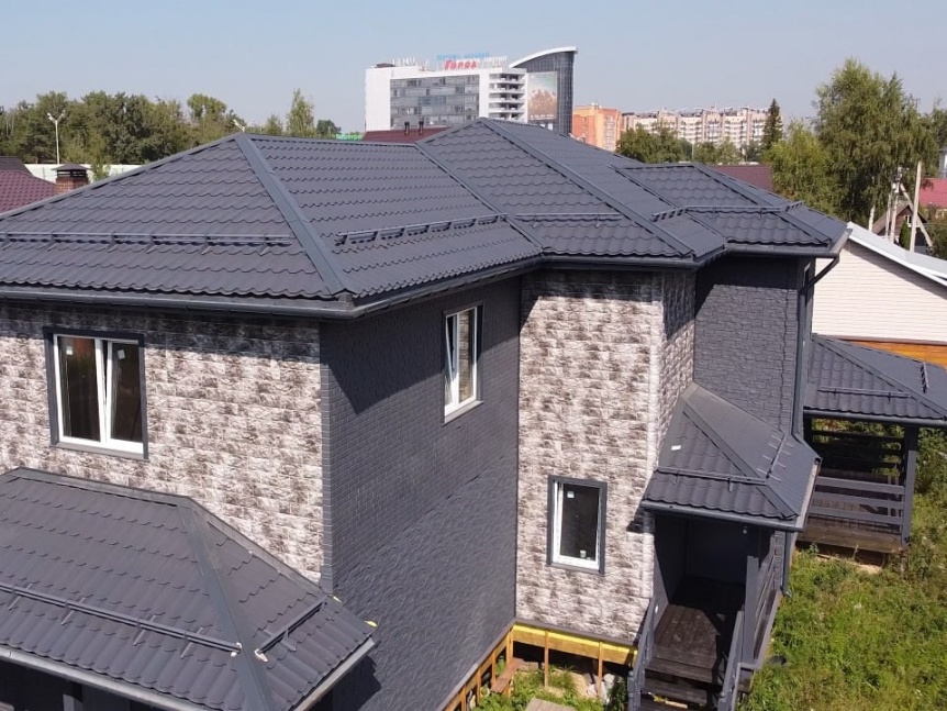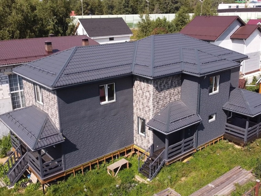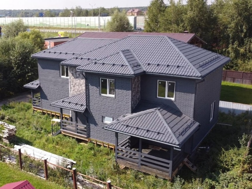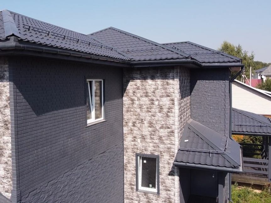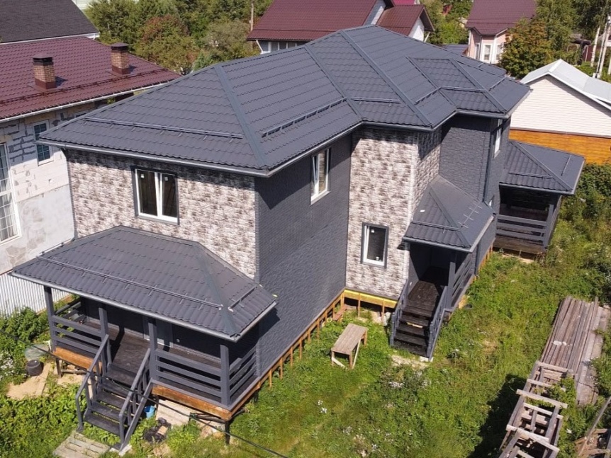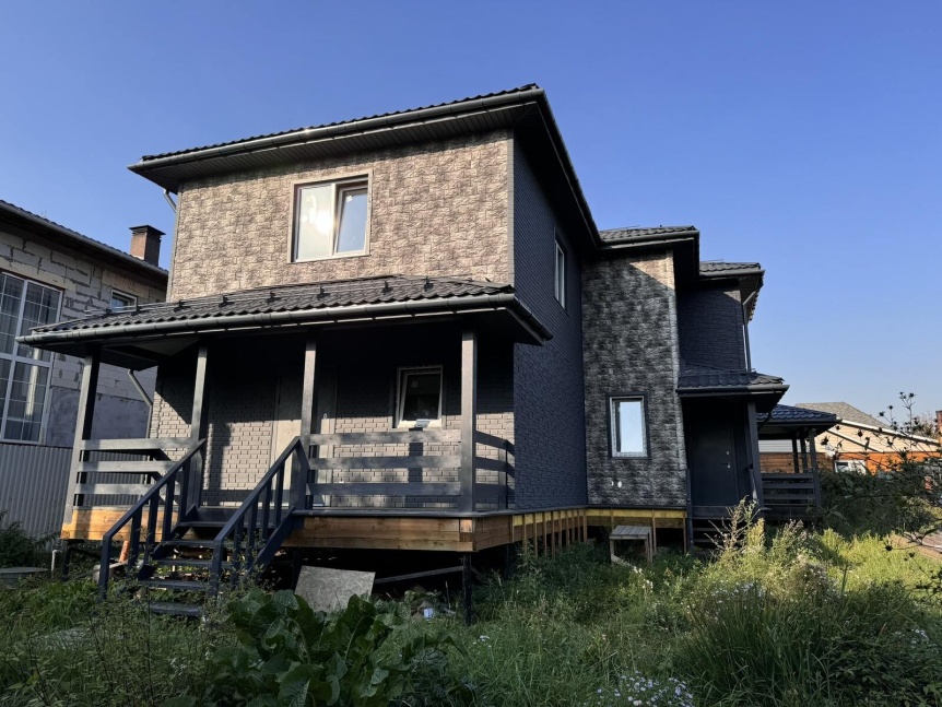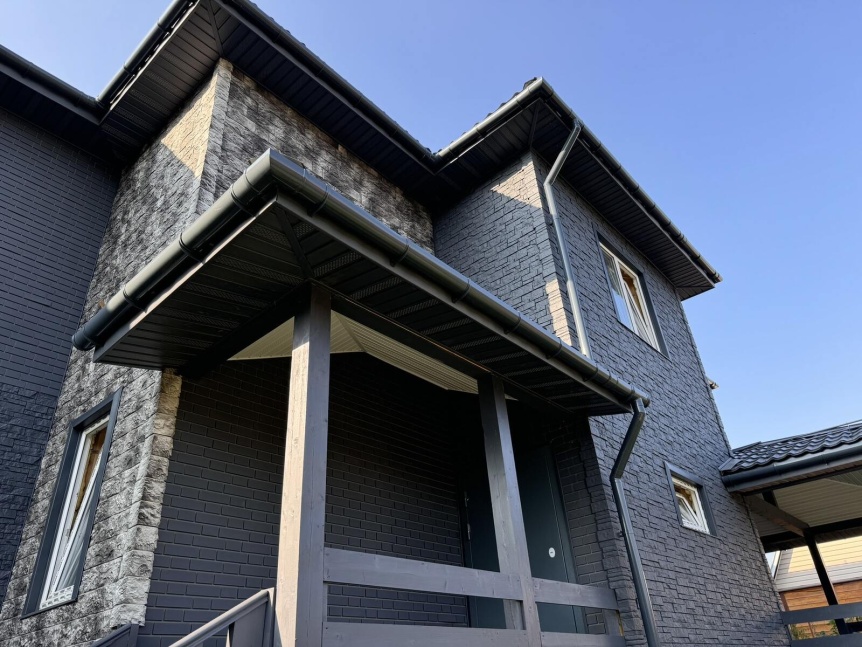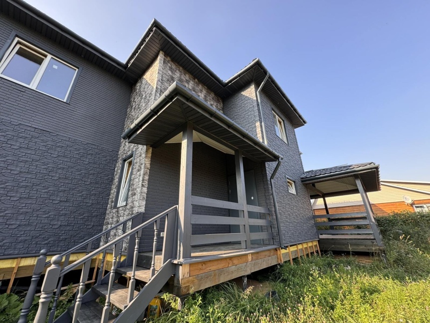 Этот просторный двухэтажный дом площадью 260 кв.м сочетает современный дизайн с максимальным комфортом. Элегантный серый фасад, выполненный из высококачественных материалов, подчеркивает архитектурную сложность здания. Дом оборудован несколькими входными группами и уютными террасами, что придает ему дополнительное удобство и функциональность.