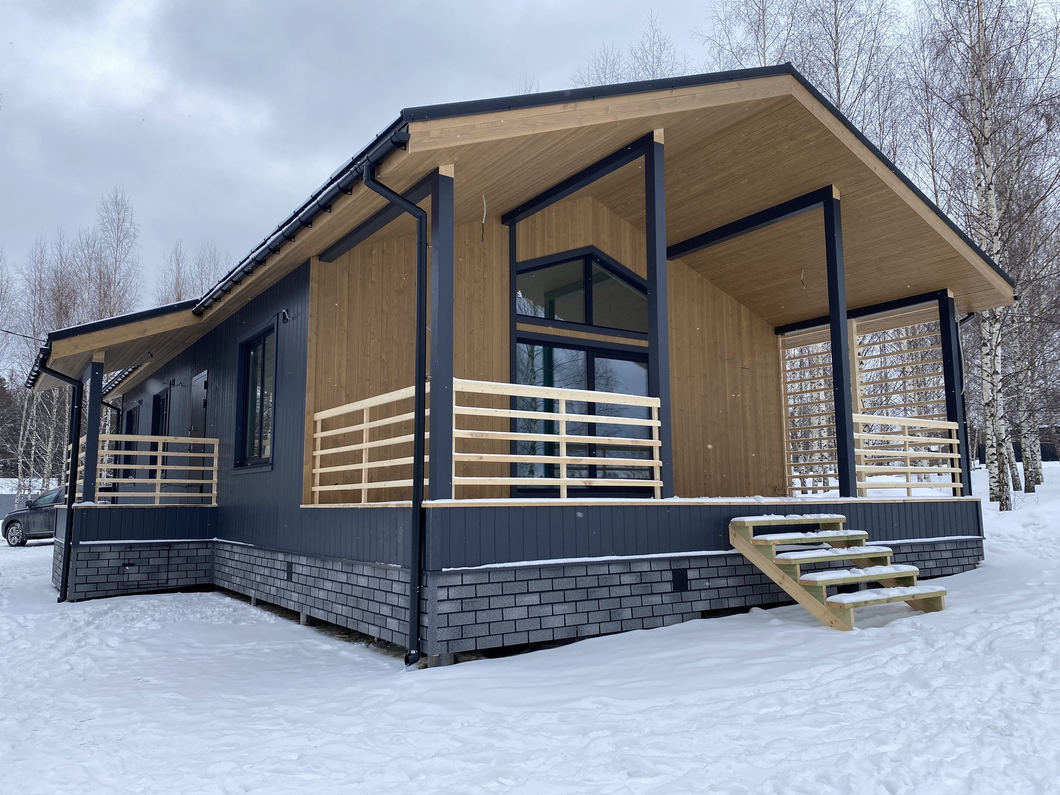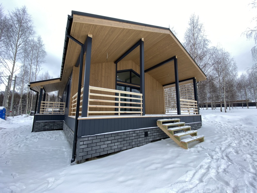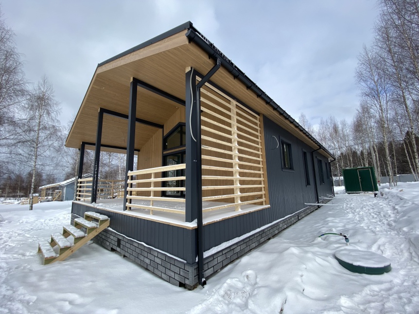 Это обусловлено, как тем, что это одноэтажный дом (что является главным трендом последних лет), так и эффектным внешним видом.