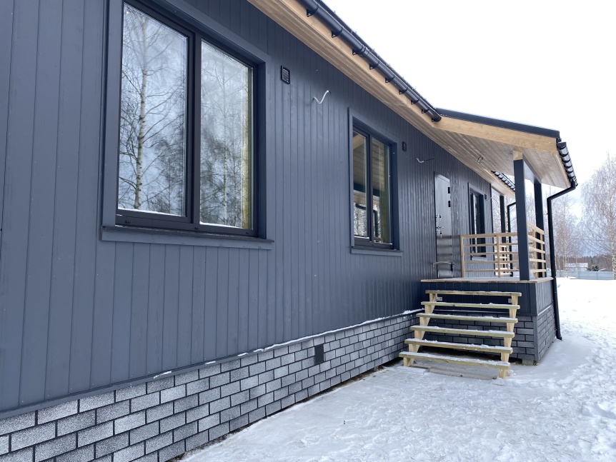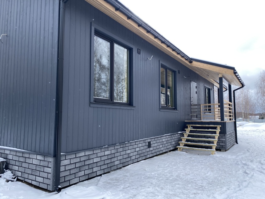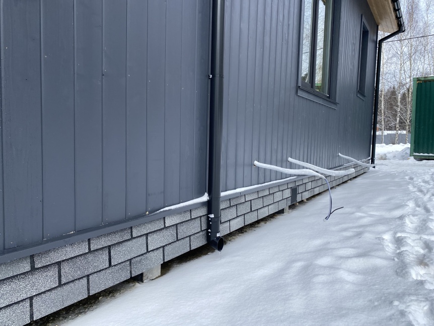 Облицовка цоколя - панели HAUBERK. Простой и эффектный способ спрятать фундамент из железобетонных свай.
