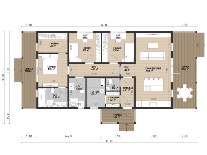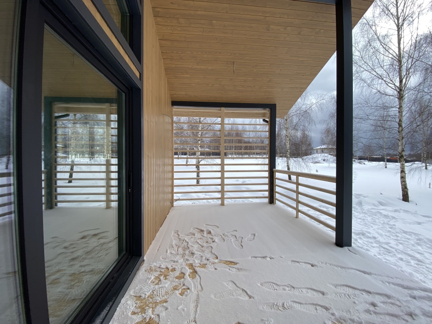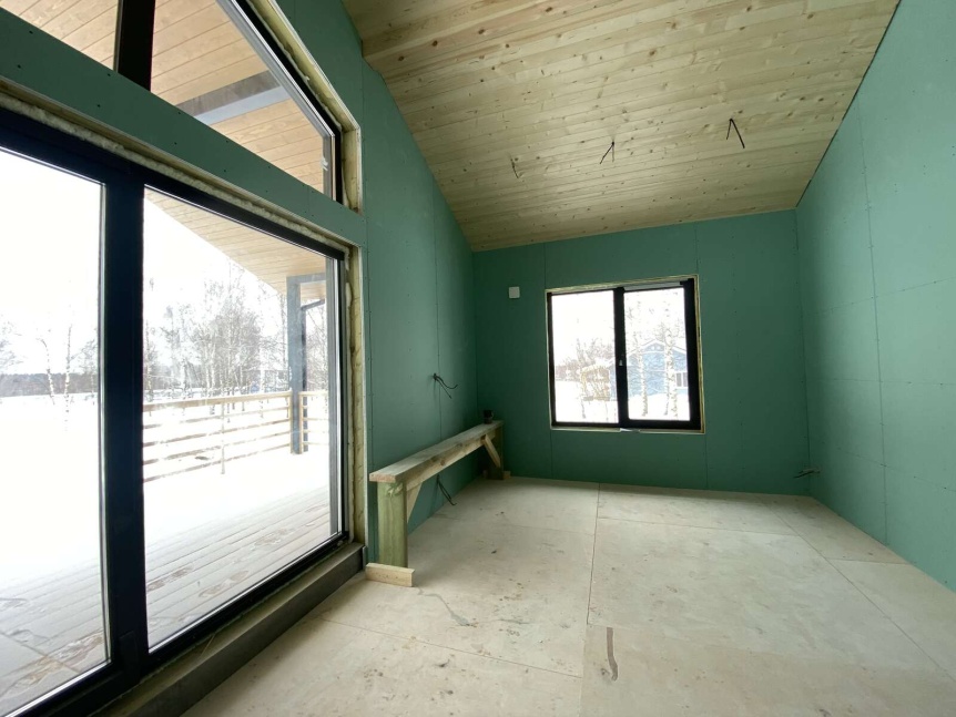 В доме 2 спальни, 2 санузла, кабинет, гардеробная, кухня-гостиная с выходом на просторную террасу и техническое помещение.