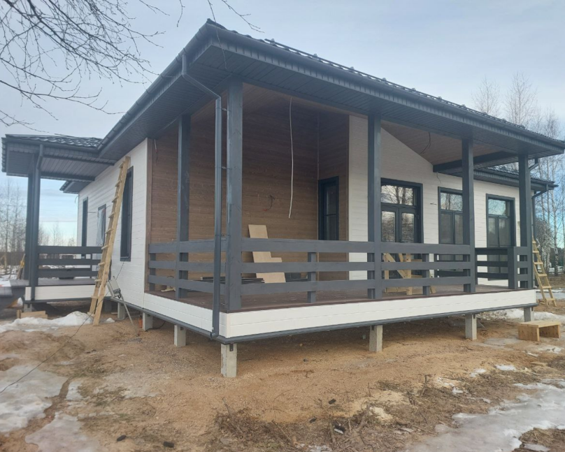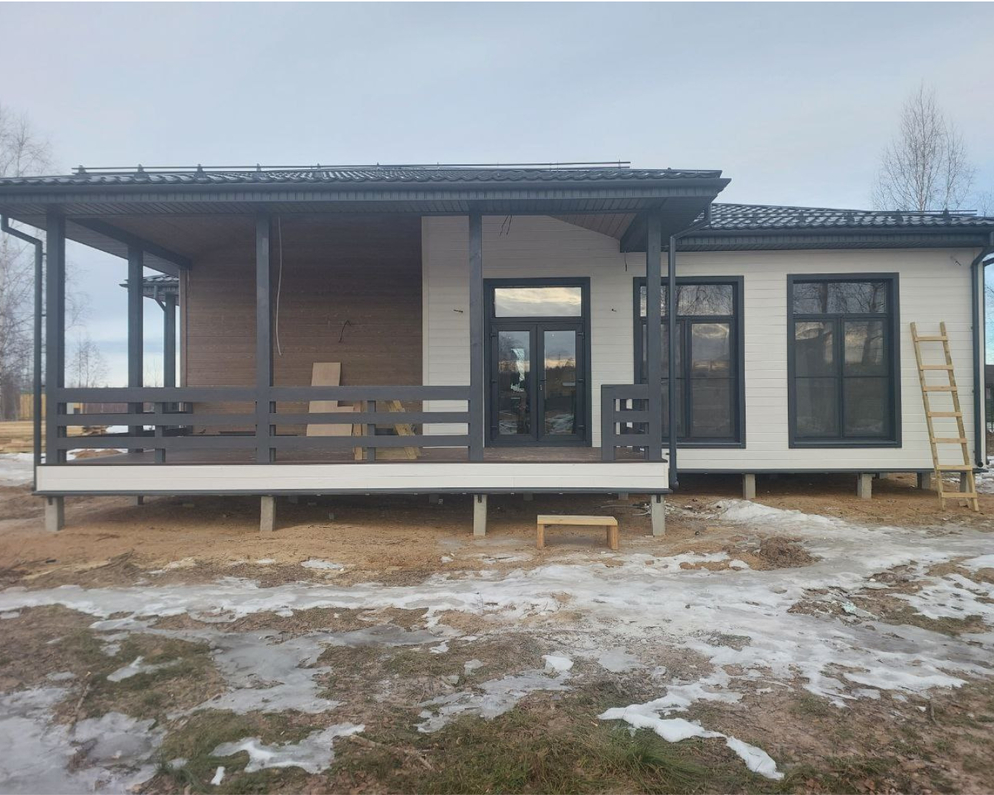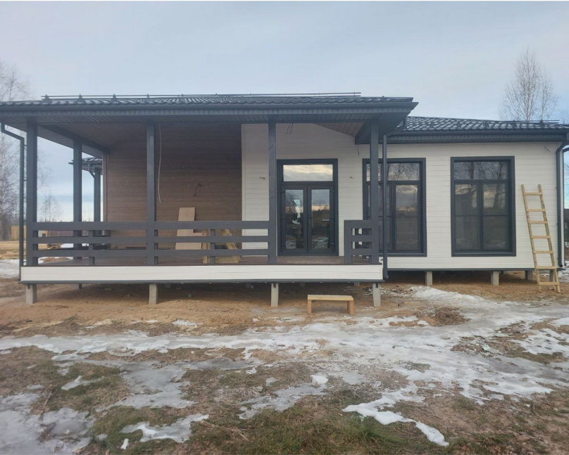 "Хамильтон" – это одноэтажный дом с просторной террасой, панорамными окнами и стильным фасадом. Этот проект сочетает в себе современные архитектурные решения и уют, создавая идеальное пространство для жизни за городом.