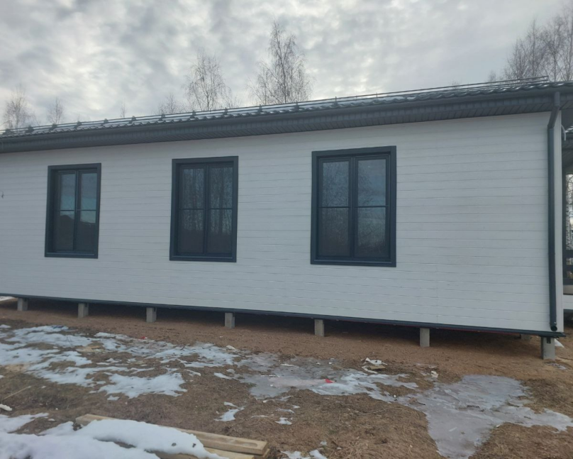 - Окна: ламинированные ПВХ в антрацитово-сером цвете