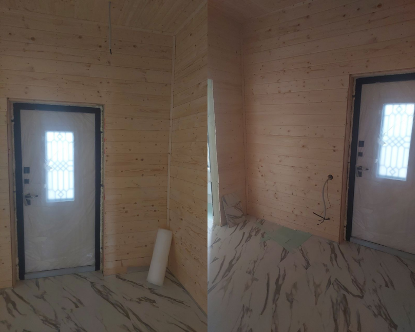 - Фасад: имитация бруса и доска 21×145 мм в цвете Valtti Tammi