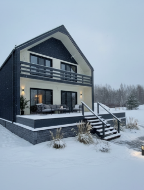 Просторный каркасный дом, построенный на основе проекта "Либен" в Павлово-Посадском районе, СНТ "Калинка". Изюминкой проекта стала терраса, площадь которой составила 40 квадратных метров.