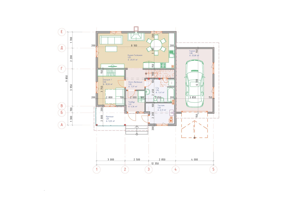Двухэтажный загородный коттедж в классическом стиле построен в Одинцовском районе (п. «Старый городок») по технологии «каркас». На первом этаже традиционно спроектирована гостиная с кухней, спальня, которую можно приспособить под кабинет, техническое помещение. Есть гараж на один автомобиль. На втором этаже разместились 3 спальных, гардеробная комната и большая ванная на 10 м². Внешние стены дома обшиты фасадными  ПВХ панелями под кирпич. Многоуровневая крыша покрыта металлочерепицей. Также на крыше были установлены снегозадержатели, выведена система вентиляции.