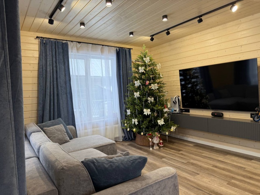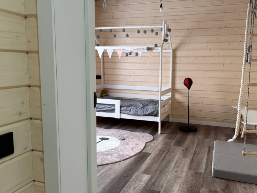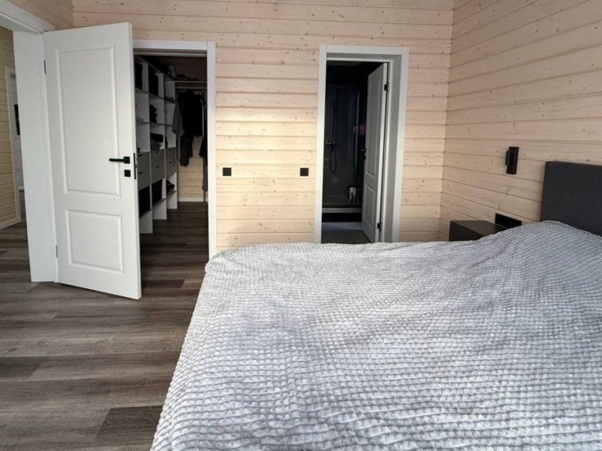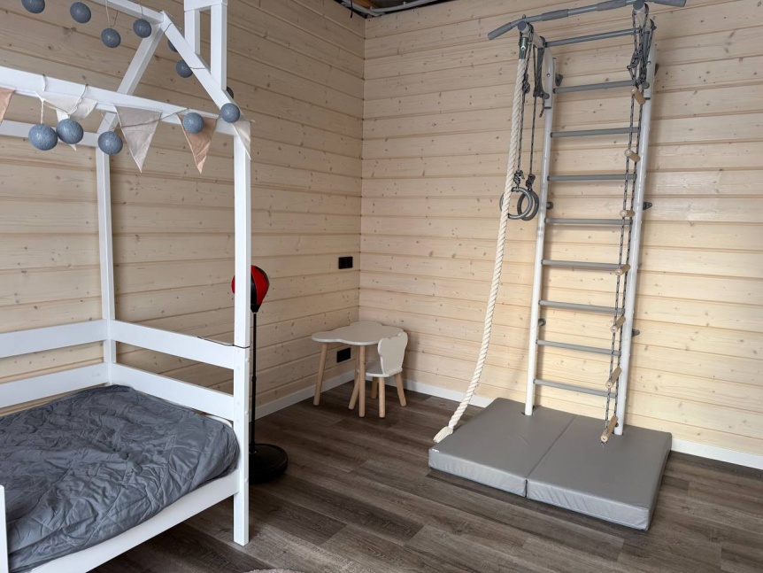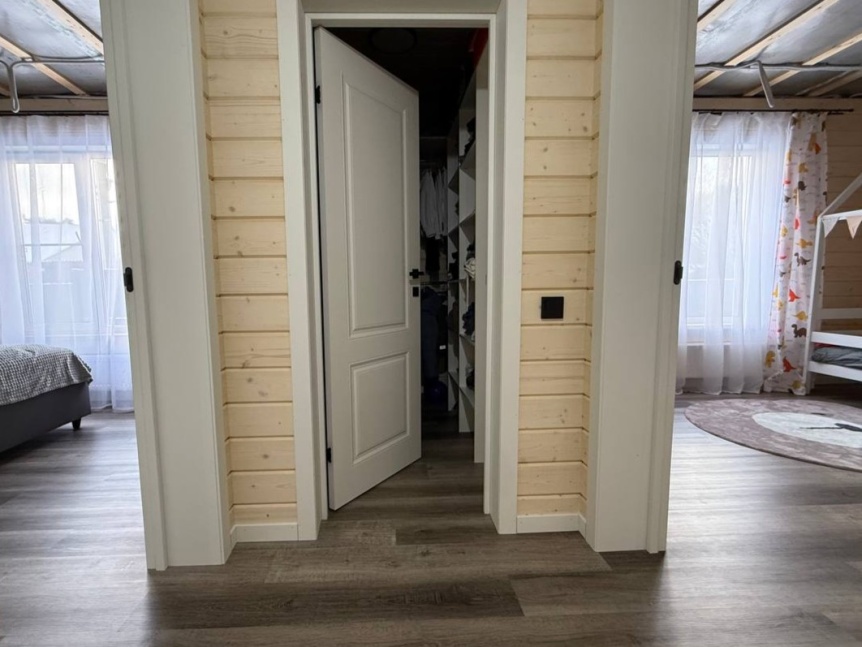 Планировка логичная и взрослая. Мастер-спальня вынесена в отдельную зону: собственный санузел и гардеробная — приватность, которую начинаешь ценить уже через неделю жизни в доме. Детский блок продуман не менее тщательно: две отдельные спальни, собственная гардеробная и общий санузел. Никаких «временных решений» — детям сразу удобно.