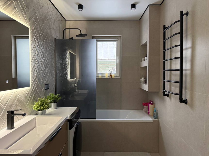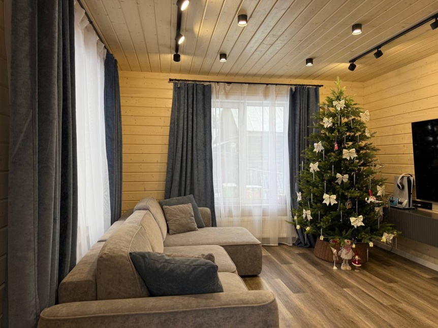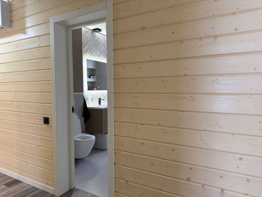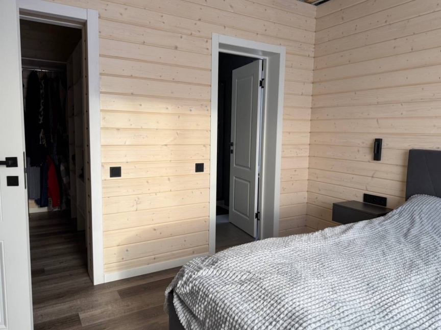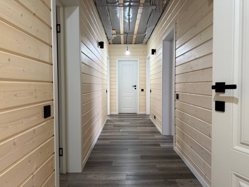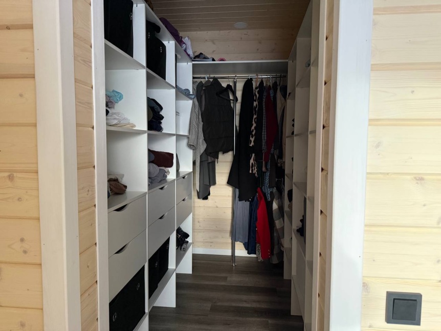 Планировка логичная и взрослая. Мастер-спальня вынесена в отдельную зону: собственный санузел и гардеробная — приватность, которую начинаешь ценить уже через неделю жизни в доме. Детский блок продуман не менее тщательно: две отдельные спальни, собственная гардеробная и общий санузел. Никаких «временных решений» — детям сразу удобно.