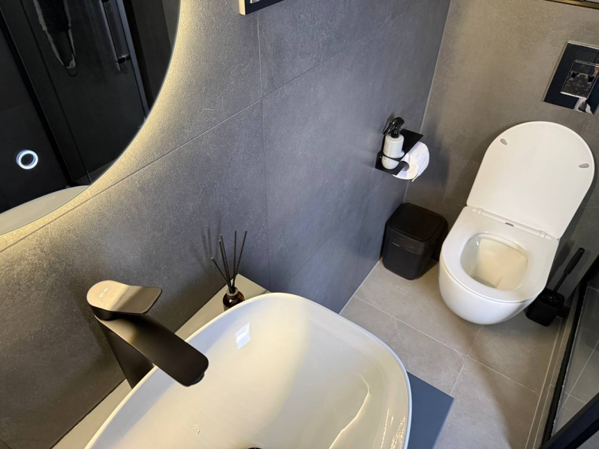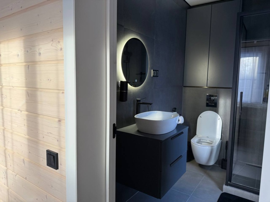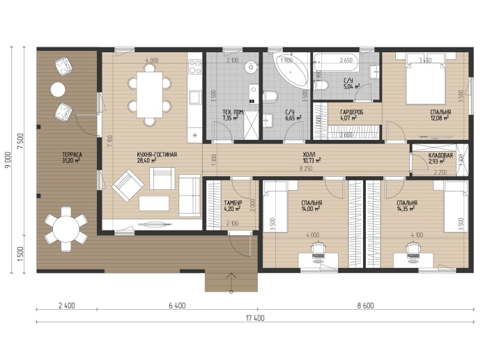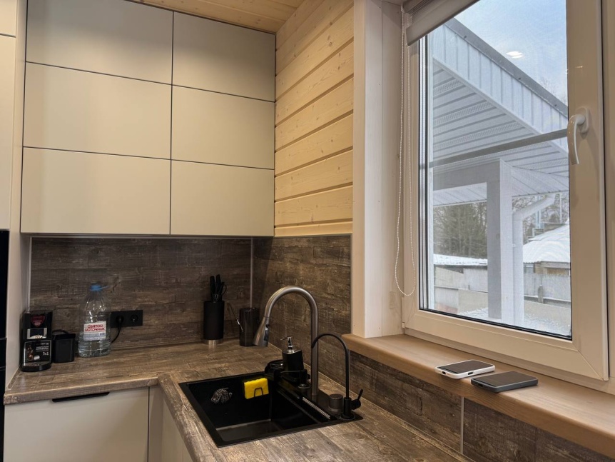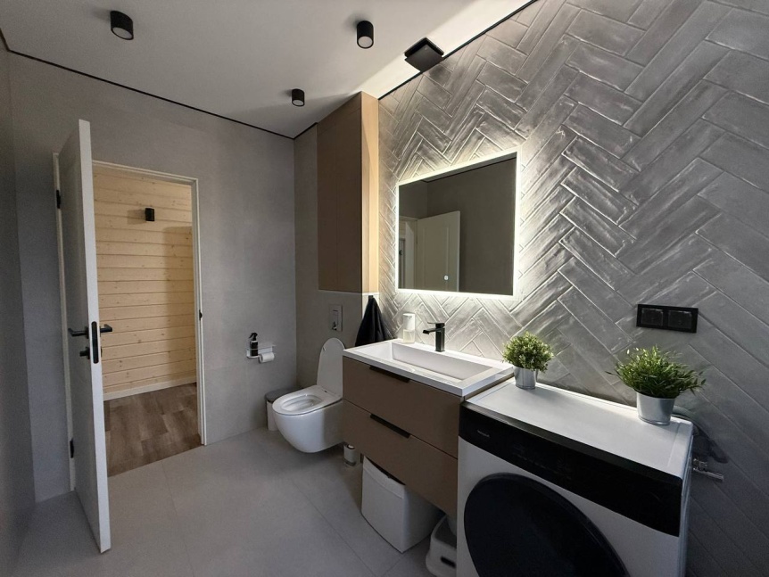 В проекте предусмотрено техпомещение — всё инженерное остаётся за кулисами, не вмешиваясь в эстетику и быт. Дом компактный, но ощущается больше за счёт грамотного зонирования и отсутствия случайных метров.