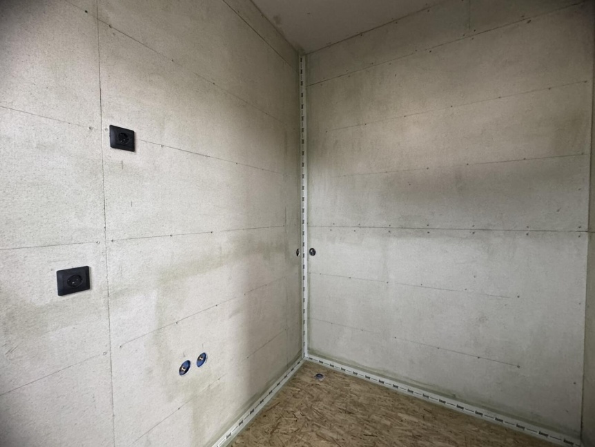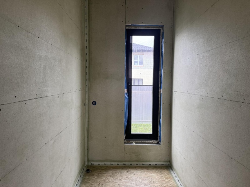 В доме для наших заказчиков Светланы и Олега предусмотрены 2 спальни одинаковой плащади: гостевая и мастер-спальня с собственной гардеробной и санузлом. Кроме того, в доме предусмотрена просторная кухня-гостиная с панорамным остекленем, что гарантирует большое количество дневного света в этом помещении. Ведь это важнейшая зона для владельцев дома. Именно здесь будет готовиться аппетитные воскресные завтраки и просматриваться любимые фильмы по вечерам.
