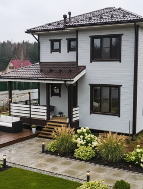 Дом на основе проекта Хамильтон для постоянного проживания, площадью 101 кв.м.Поздравляем вас с завершением строительства вашего дома! Мы надеемся, что весь процесс был для вас легким и приятным, а результат превзошел ваши ожидания.