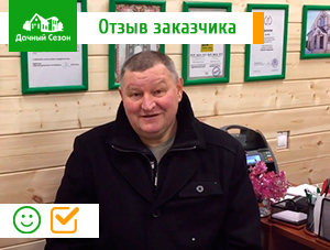 Компанию «Дачный сезон» нашли в интернете, когда искали проект будущего дома. Сравнили со всеми и пришли к выводу, что эта фирма нам подходит. И по цене, и по срокам изготовления, сами проекты домиков очень понравились. Приехали в офис, менеджер проконсультировал, показал еще несколько проектов, пообщались с дизайнером. Через неделю заключили договор и внесли первую часть денег. В доме мы уже живем три месяца. Очень довольны. Огромное спасибо за качественную работу. Всем советуем «Дачный сезон».