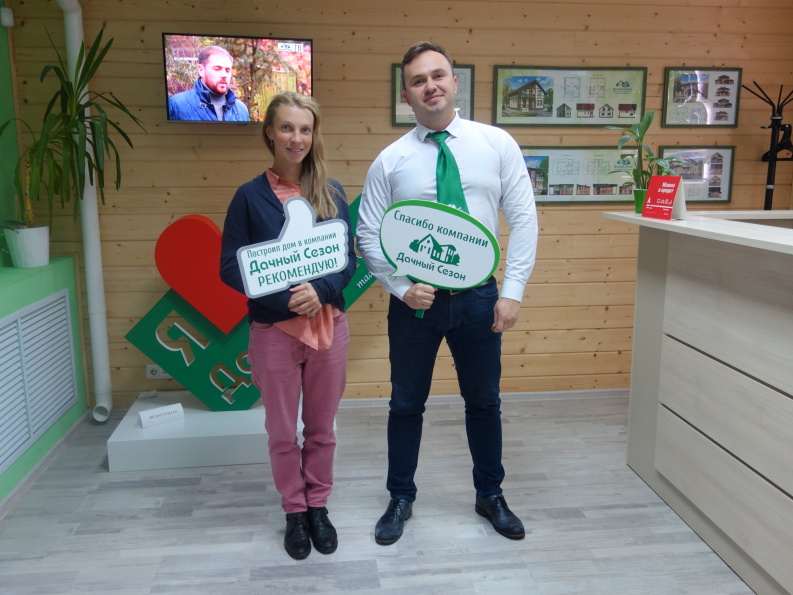 Для своего будущего дома я выбрала проект Клавердон. Строили на очень сложном участке, перепад был около 60 см, но со свайным фундаментом получилось выровнять. Получился очень просторный дом со вторым светом. Отдельное спасибо архитектору, он разработал очень нетипичное решение с треугольными окнами. Спасибо компании "Дачный Сезон"!