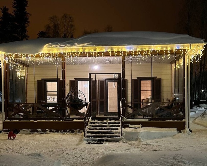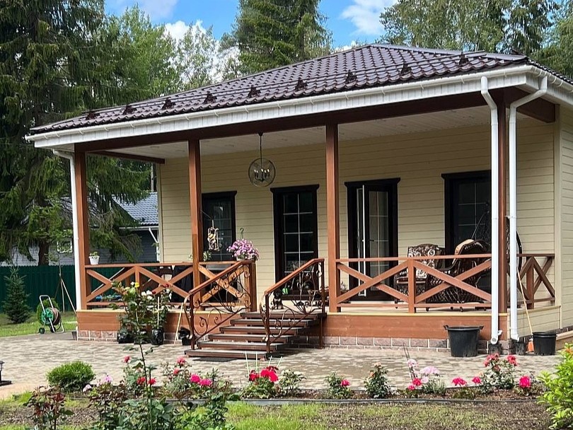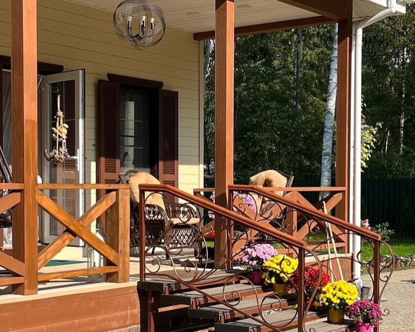 - Детали террасы/крыльца (колонны, ограждения, торцы) - RAL 8024;