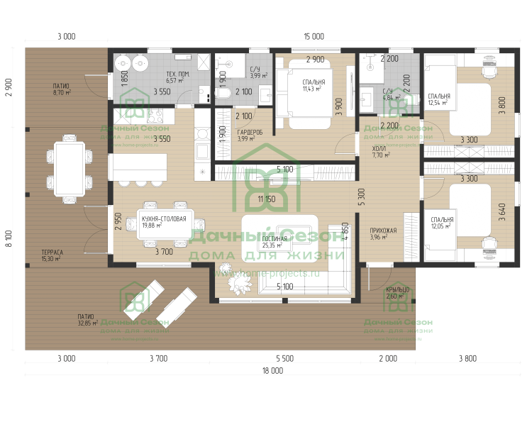 Стоимость строительства и площадь дома указана на странице каждого проекта. Внутренняя площадь помещений может меняться в зависимости от толщины стен и внутренней отделки. Стоимость строительства и проектирования указана без учета стоимости крылец, террас и балконов. Возможно внесение изменений в проект дома, внесение изменений в комплектацию дома и строительных материалов с учетом пожеланий Заказчика и корректировкой стоимости.