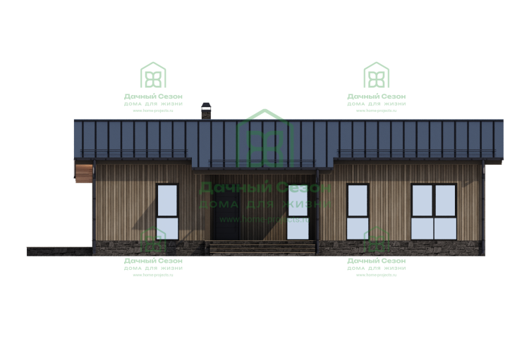 Проект дома «Патагония» от «Дачный Сезон» — компактный, стильный и очень уютный одноэтажный коттедж для комфортной жизни семьи из 4–5 человек. Идеален для тех, кто ценит практичность, минимум лестниц и максимум света/простора на относительно небольшом участке.