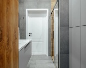 Центром дома является большая гостиная площадью 36,8 м² — светлое пространство с панорамными окнами и выходом на террасу, где так приятно проводить вечера. Рядом расположена кухня-столовая (18,6 м²) с удобной кладовой и выходом на уютное патио — отличное место для летних обедов или барбекю.