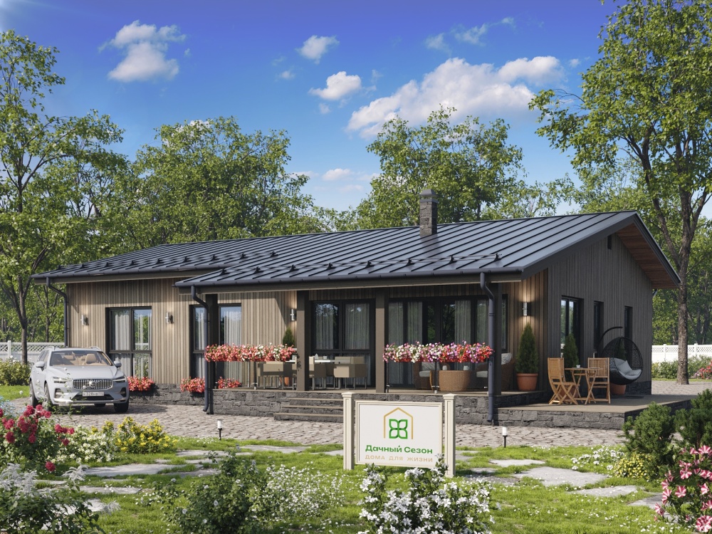 Этот проект сочетает в себе эстетику и практичность, подходя как для сезонной дачи премиум-класса, так и для постоянного проживания небольшой семьи. Строгий скандинавский стиль фасада гармонично дополняет любой участок в Московской или Ленинградской области.