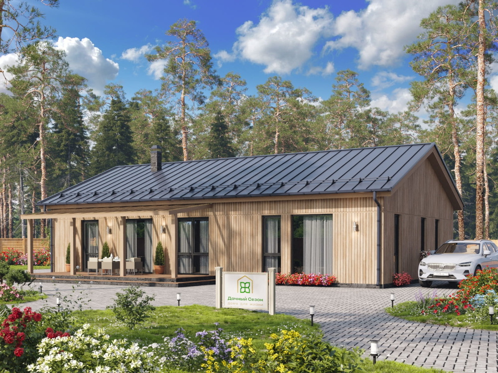 Этот проект сочетает в себе эстетику и практичность, подходя как для сезонной дачи премиум-класса, так и для постоянного проживания небольшой семьи. Строгий скандинавский стиль фасада гармонично дополняет любой участок в Московской или Ленинградской области.