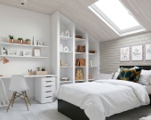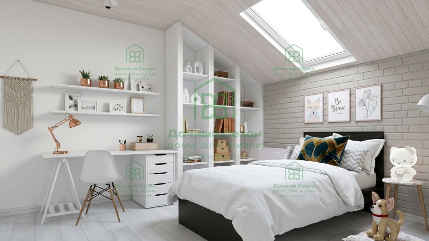 Мансардный этаж полностью отведен под личное пространство членов семьи.