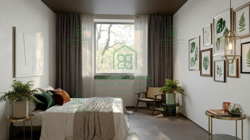 Спальня первого этажа (11,62 кв. м) — универсальное пространство, которое может служить гостевой комнатой, тихим кабинетом или спальней для родителей.