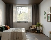 Две спальни (по 15,12 кв. м каждая) — симметричные светлые комнаты, в которых предусмотрены ниши для встроенных шкафов.