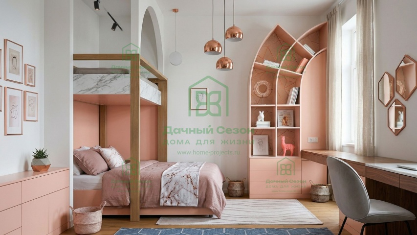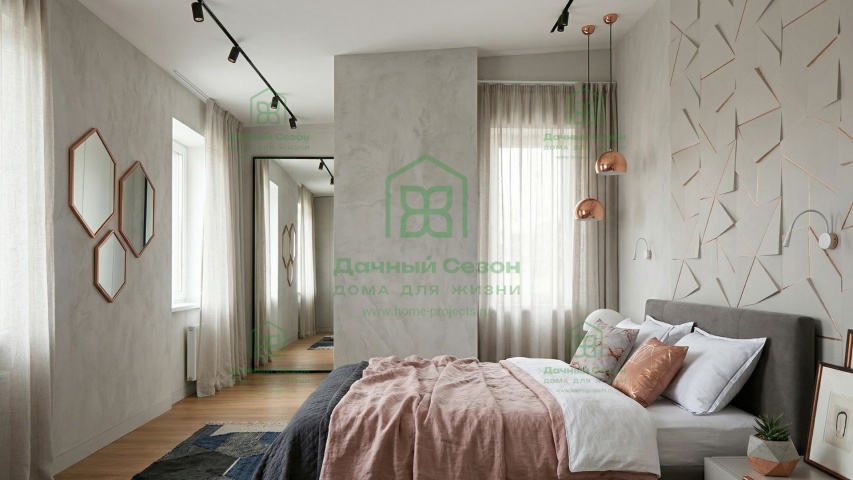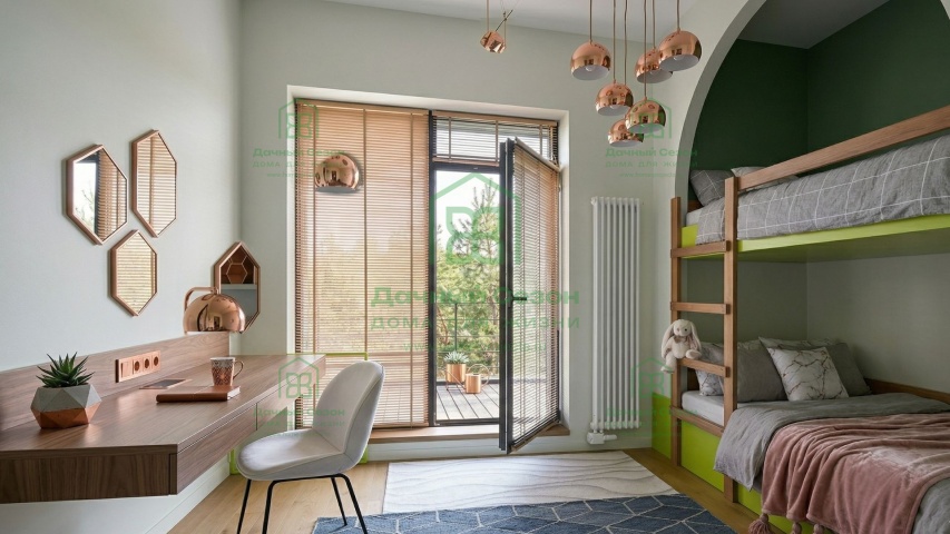 Мастер-спальня (13,2 кв. м) имеет собственный выход на террасу и индивидуальный санузел (4,95 кв. м), обеспечивая родителям полную приватность.