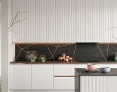 Дом имеет вытянутую форму (основные габариты 9х15 м) и двускатную кровлю из клик-фальца графитового цвета. Фасад комбинированный: светлая штукатурка гармонично сочетается с деревянным планкеном, создавая уютный и современный образ.