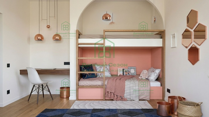 Две дополнительные спальни (по 10,85 кв. м каждая) расположены в центральной части дома. Они идеально подойдут для детских комнат или гостевой и кабинета.